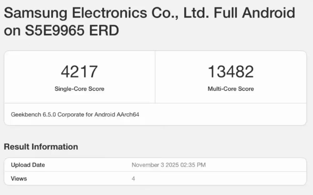 随着时间的推进,最近再次有消息曝光了三星 Exynos 2600 旗舰芯片的工程样品成绩。这次的跑分列表显示,其单核成绩为 4217 分,多核成绩为 13482 分。